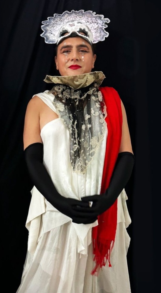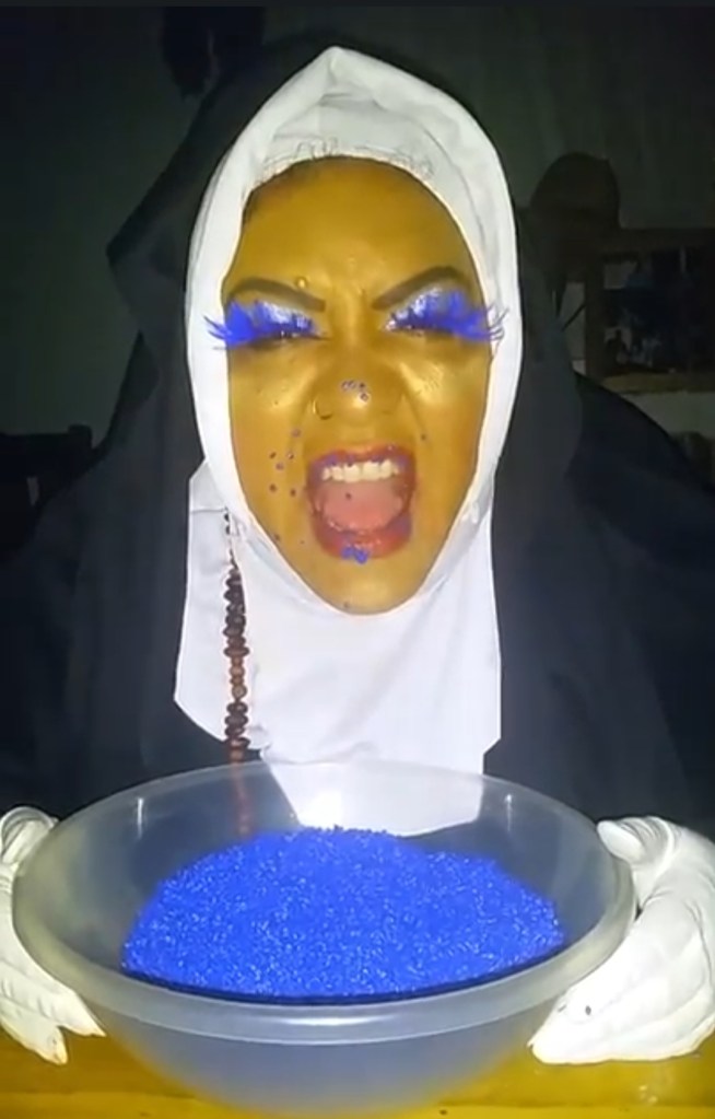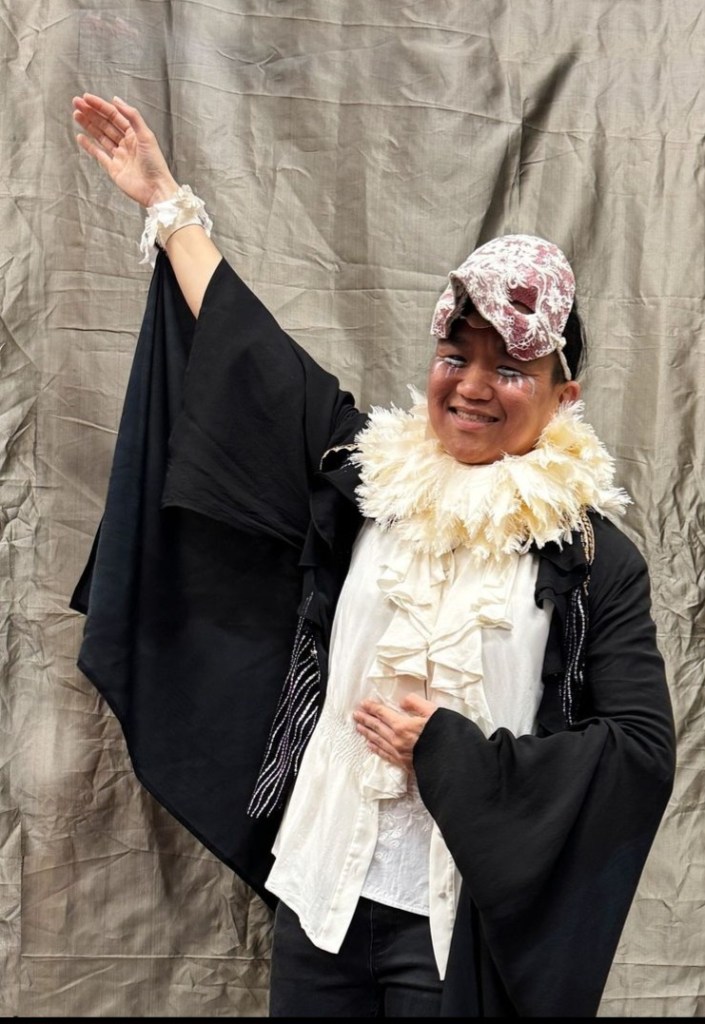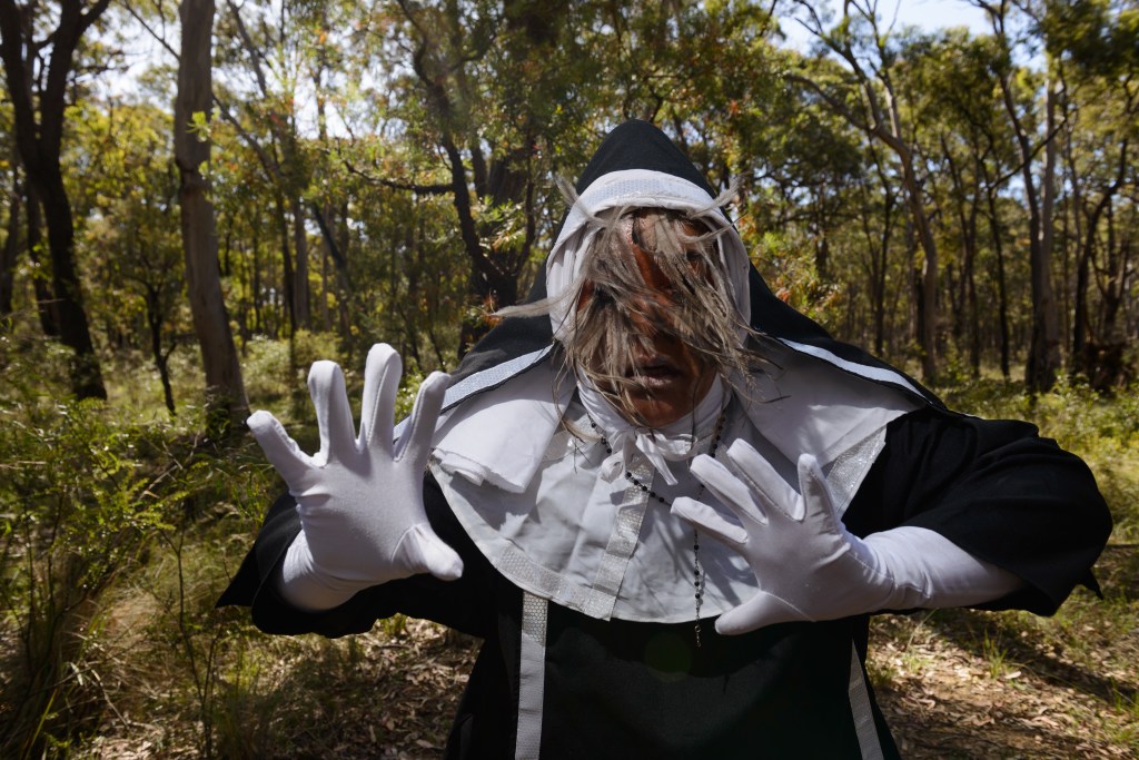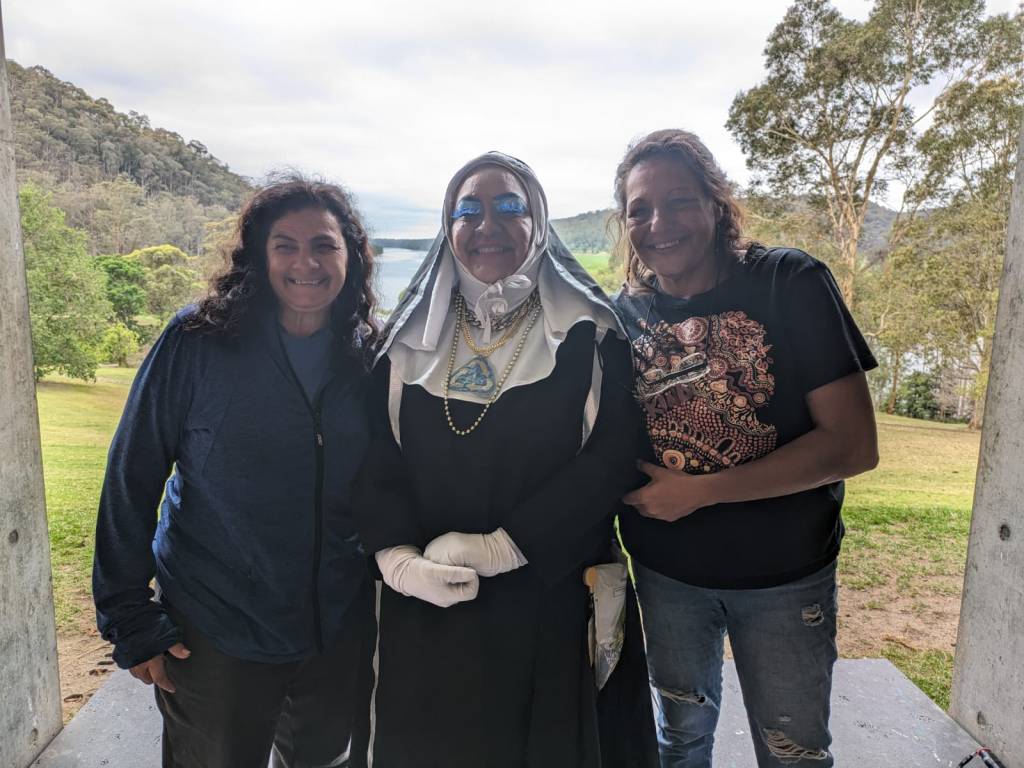 Juundaal Strang-Yettica. Bundjalung and Kannakan contemporary artist, who sometimes performs as Sister GlitterNullius X, ‘a nun, imprisoned by her love-hate relationship with plastix and all things, consumerist, capitalist, catholic and post-colonial’.
