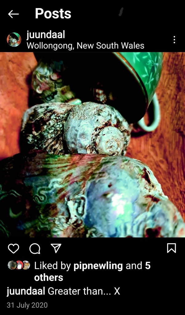Ngay garni yuggen, birin. I am from and belong to Saltwater (Cutter-Mackenzie-Knowles et al, 2020; Davis & Turpin, 2015; Gilchrist, 2016; Hall, 1997; hooks, 1992; Gilbert et al, 2017; Moraes, 2014; Todd, 2015).